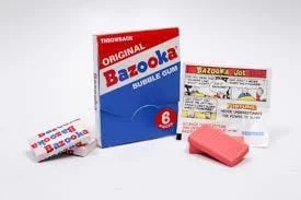 6 Piece wallet packs of Bazooka Bubble Gum in Bazooka’s signature original Bubble Gum flavor