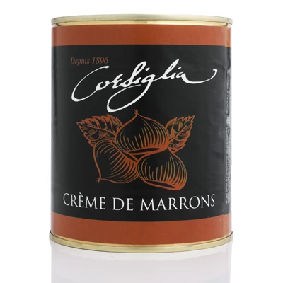 Chestnut Cream with Vanilla – Creme de Marrons a la Vanille. This Premium Chestnut Cream from Corsiglia has a smooth and fine texture that is spreadable. Made with sweet candied chestnut and flavored with Madagascar Bourbon vanilla. It can be used for high quality confections, bonbons, and truffles. It can also be added to your ganaches, mousses, and ice creams. Tin: 1kg / 2.2 lbs.