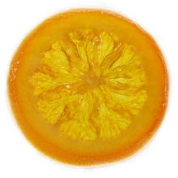 Candied Orange Slices 50/60mm These candied orange slices, from Spain origin, are the top of what you will be able to find. They come drained (meaning you are not paying for inexpensive syrup at the price of orange), making them also easier and faster to enrobe in sugar, or chocolate. Or, cut and shape them in intricate decoration for cakes.
