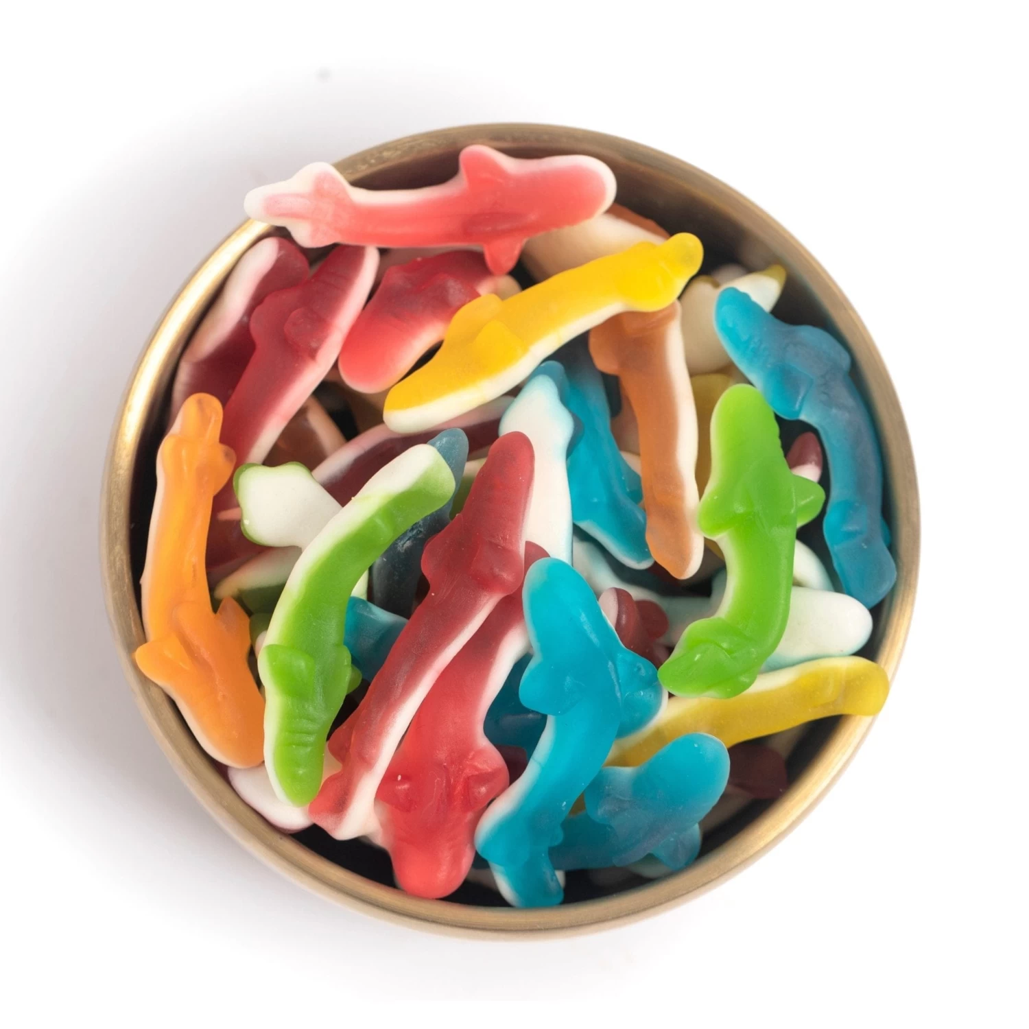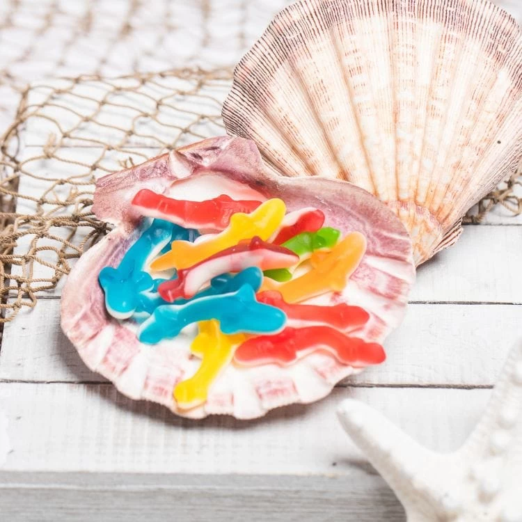 These assorted sweet and chewy shark gummy merge a variety of popular fruit flavors with a satisfying marshmallow belly to create pure gummy magic.