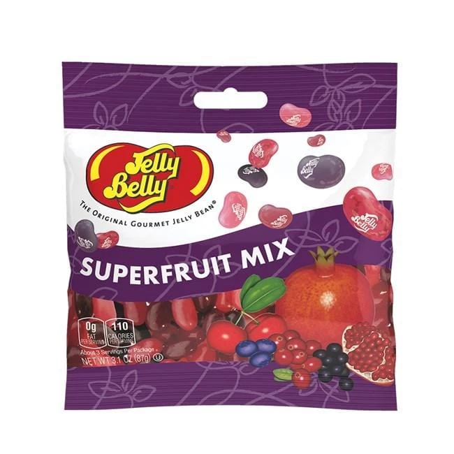 Enjoy some of the most exotic, juicy and fruity flavors in our Jelly Belly Superfruit Mix, including Acai Berry, Barbados Cherry, Blueberry, Cranberry and Pomegranate. Each tiny jelly bean delivers a huge flavor burst: we think that it will be difficult for you to enjoy just one.