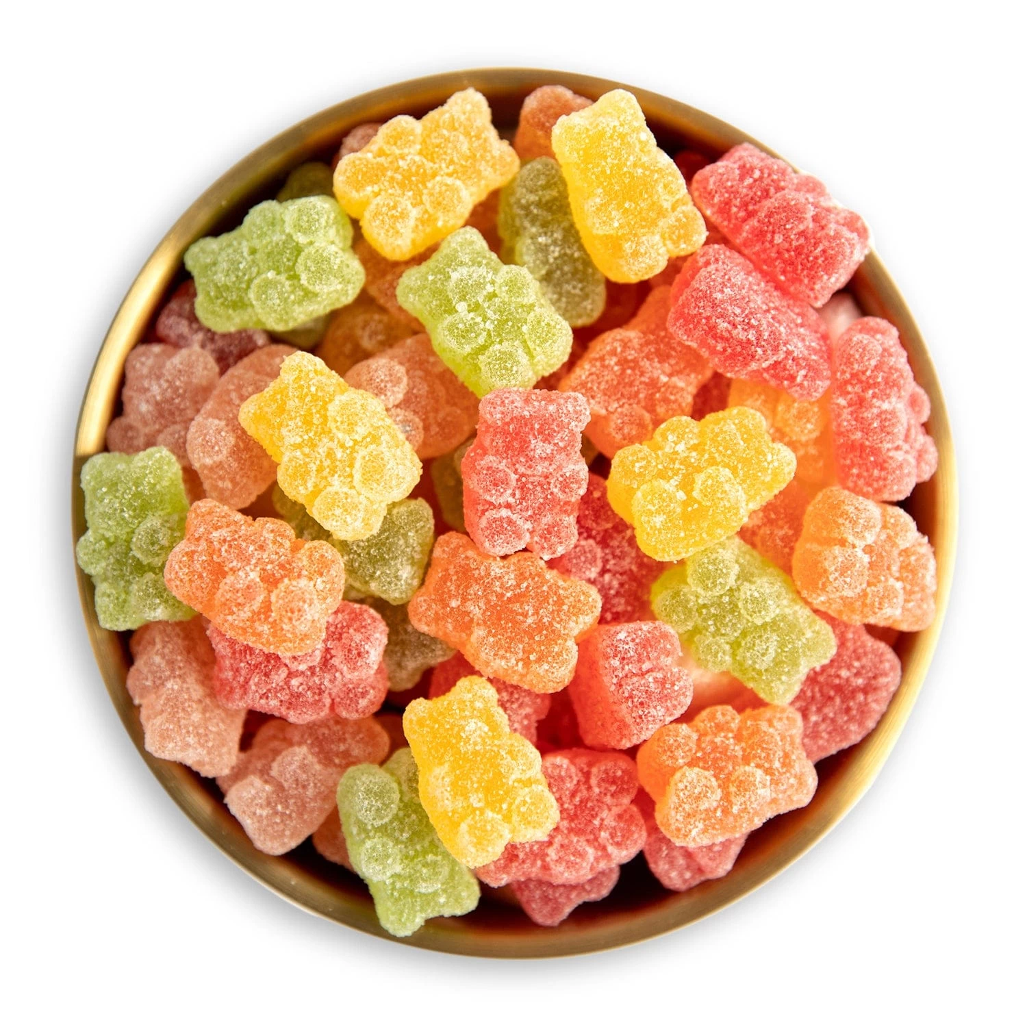 Deliciously irresistible gummy bears with a sour sanding are the perfect mix of sweet and sour.