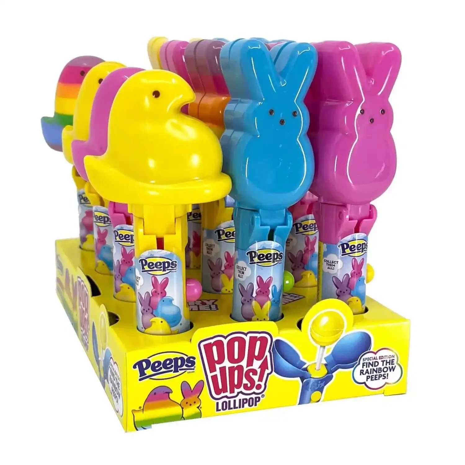 Bring some Marshmallow-flavored lollipops to your Easter baskets! These Peeps-inspired pop-up suckers feature cheerful Spring pastel colors.Â