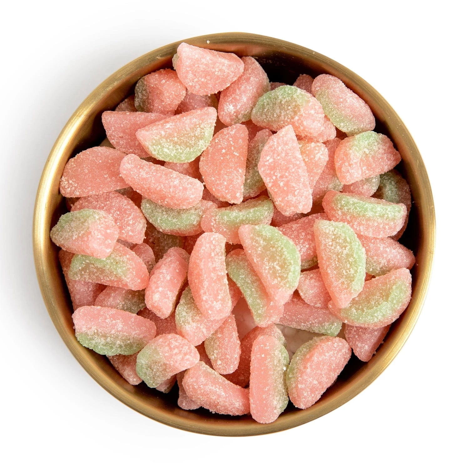 Sour Patch Kids watermelon candy offers a smooth gummy texture coated in delectable sour sugar crystals that complements the intense melon flavor.