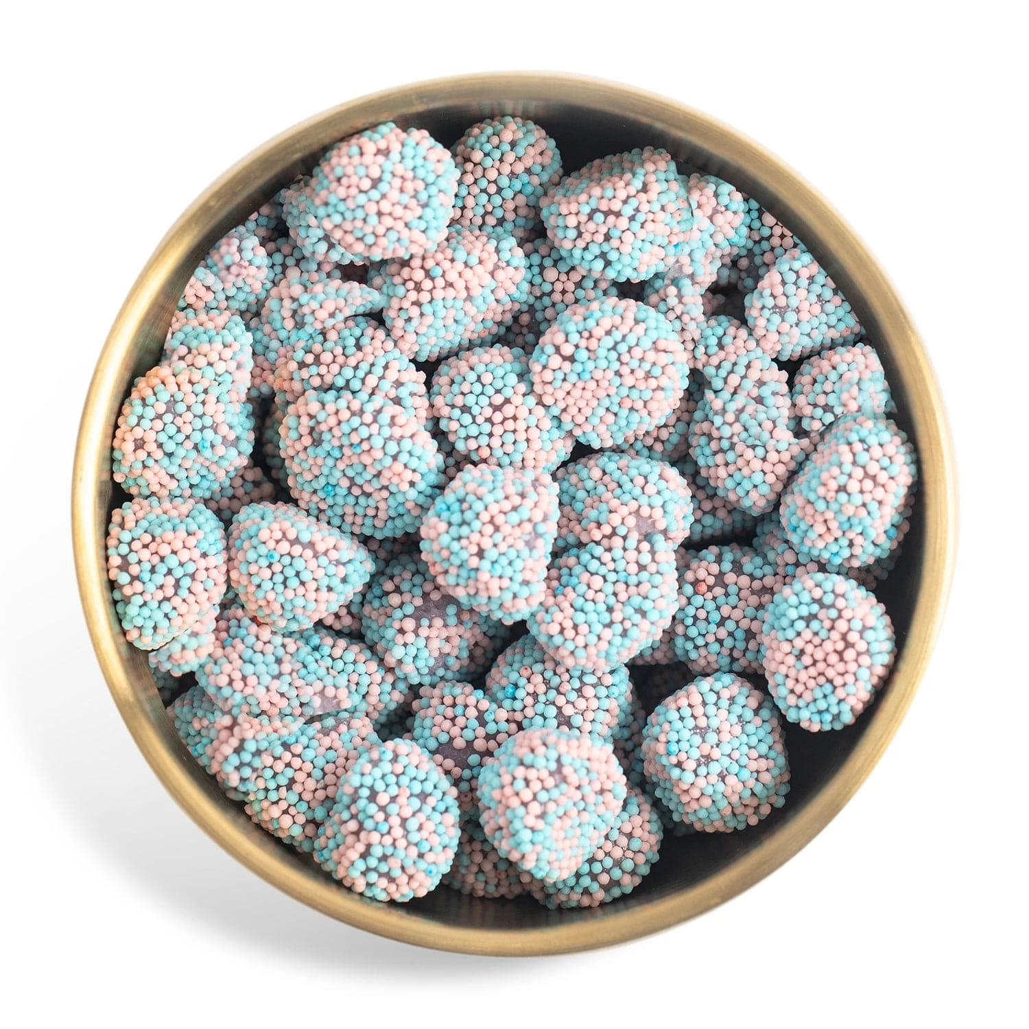 These unicorn berries are fruity gummies that are coated in a colorful, crunchy sprinkle.